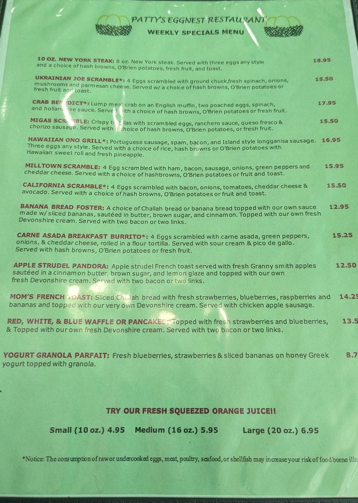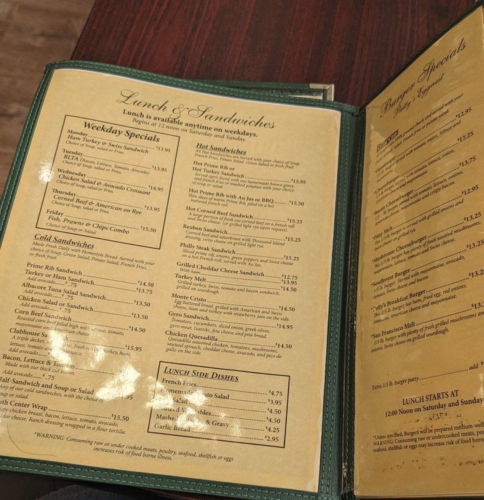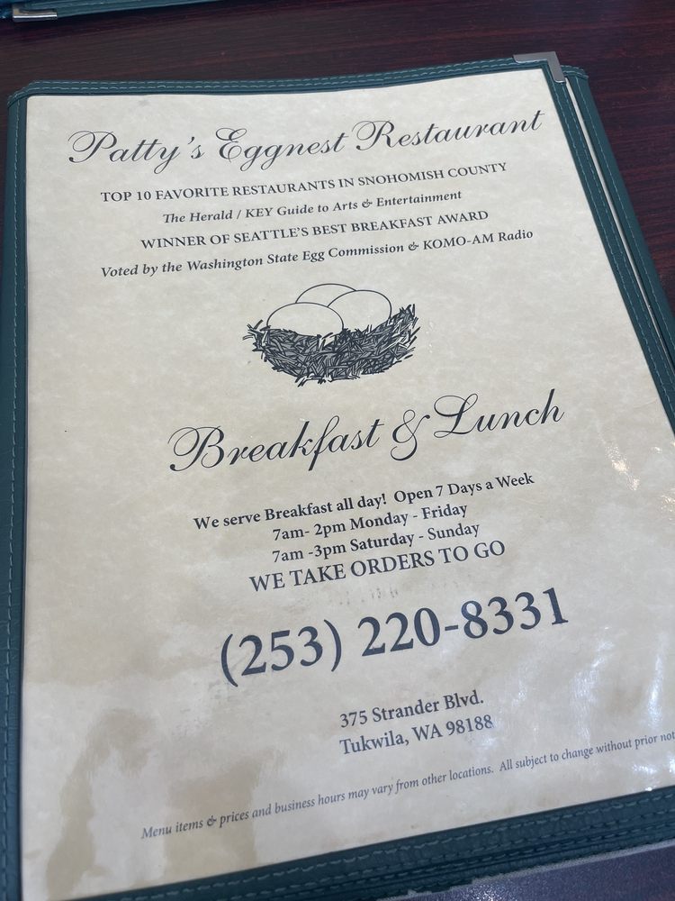 Patty's Eggnest in Tukwila, WA offers a diverse American breakfast and brunch menu, catering to all preferences including vegan and limited vegetarian options. The establishment provides various utilities such as delivery, takeout, reservations, and catering services. Customers rave about the generous portions, fast and friendly service, and the quality of dishes, with highlights like the Acapulco Scramble and the fresh squeezed orange juice receiving high praise. The cozy, bustling atmosphere adds to the overall dining experience, making it a popular spot for locals and visitors alike. Don't miss out on the delectable breakfast offerings and refreshing beverages at Patty's Eggnest.